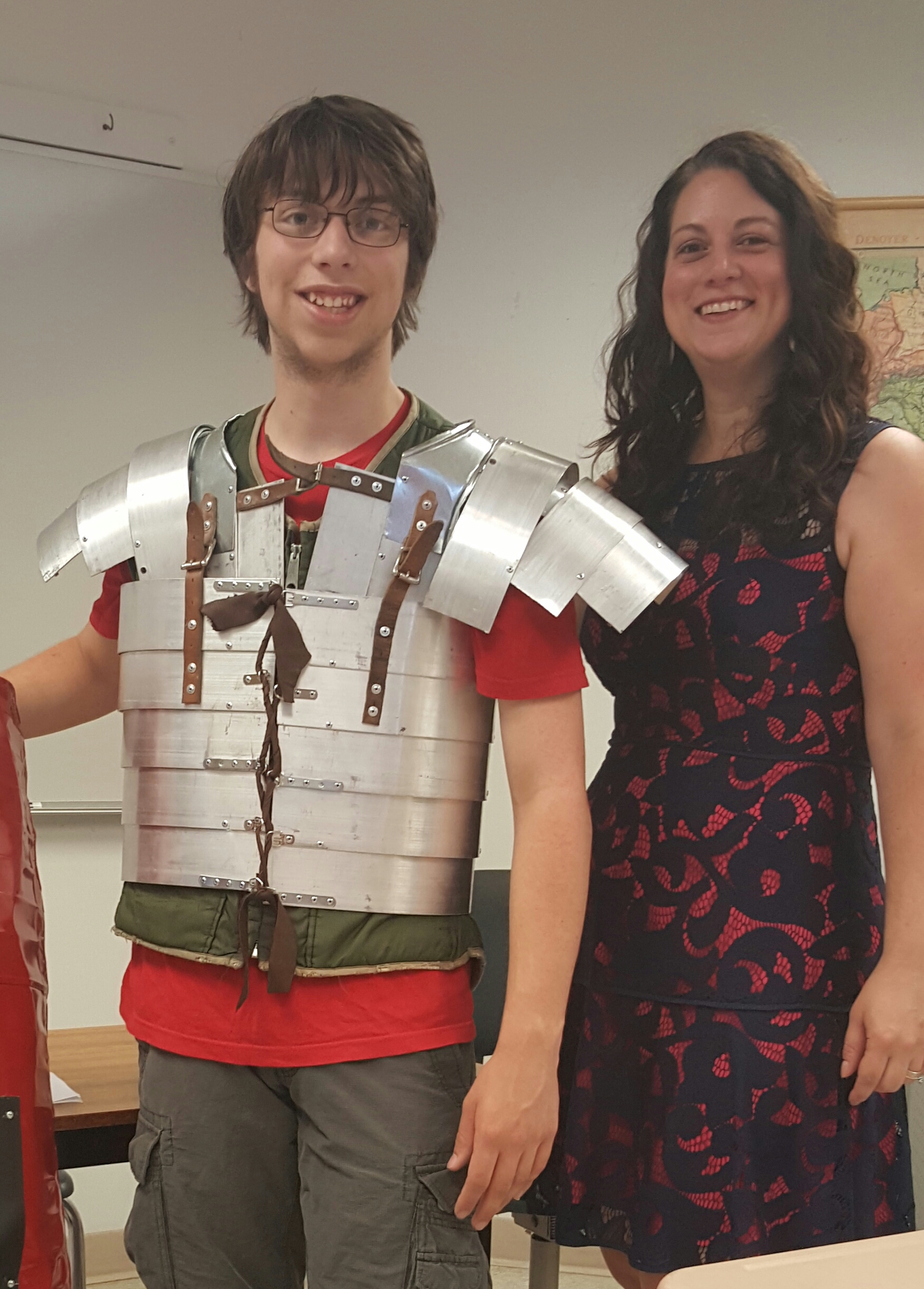 I thought you would like to see some pictures of the Latin 5 final projects.  Max and James made a Lorica Segmentata to go along with their research project on the Roman army in the Caesar class: